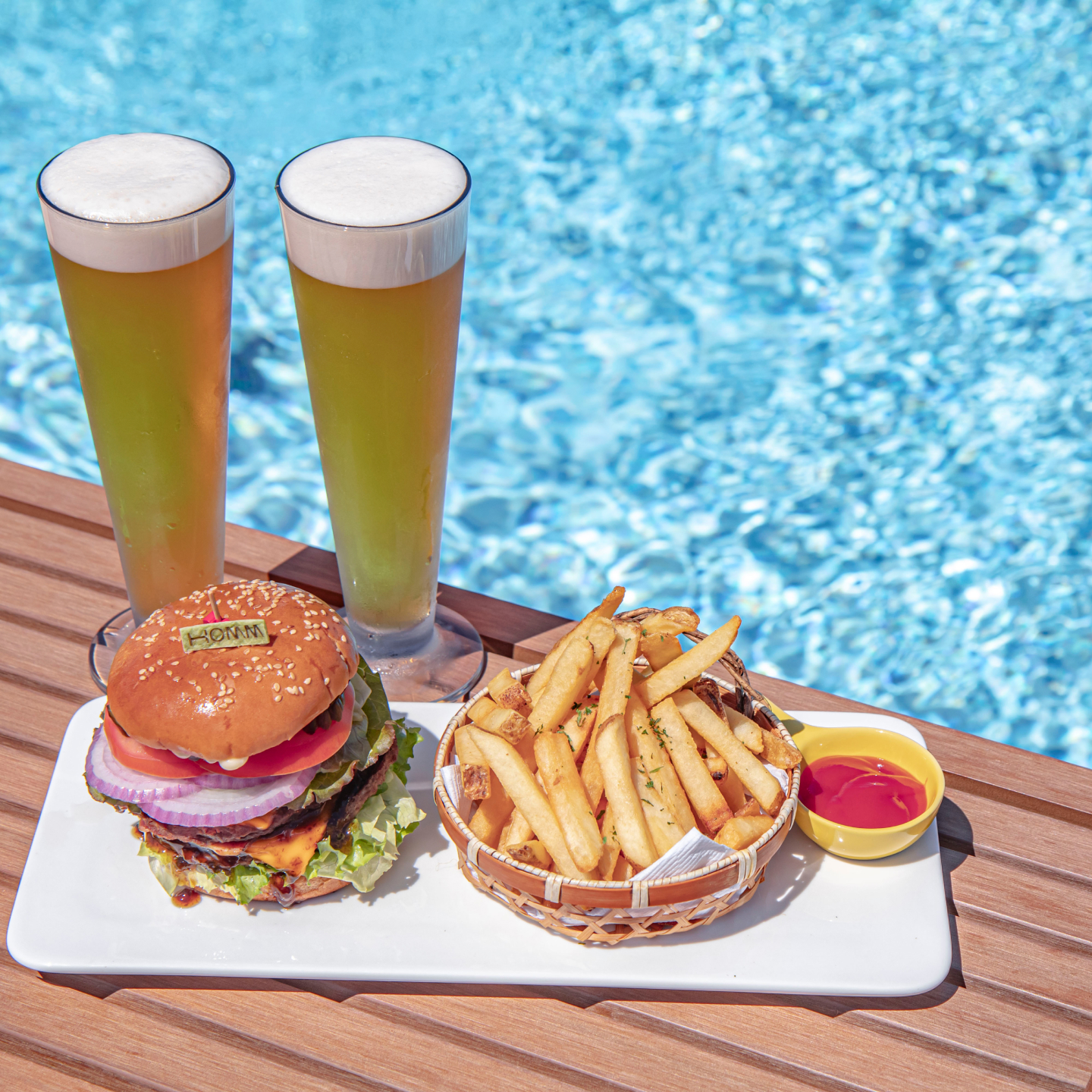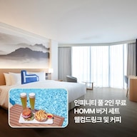 - HOMM 버거&칩 + 생맥주 2잔 룸 딜리버리 or 수영장 택1 이용