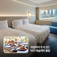 • 디럭스 비치뷰 패밀리 트윈 1박 • 까밀리아 조식 뷔페 성인 2인 • 비치 애슬래틱 클럽 수영장 무제한 이용 • 비치 애슬래틱 클럽 피트니스 무료 이용 • 비치 애슬래틱 클럽 사우나 50% 할인 이용