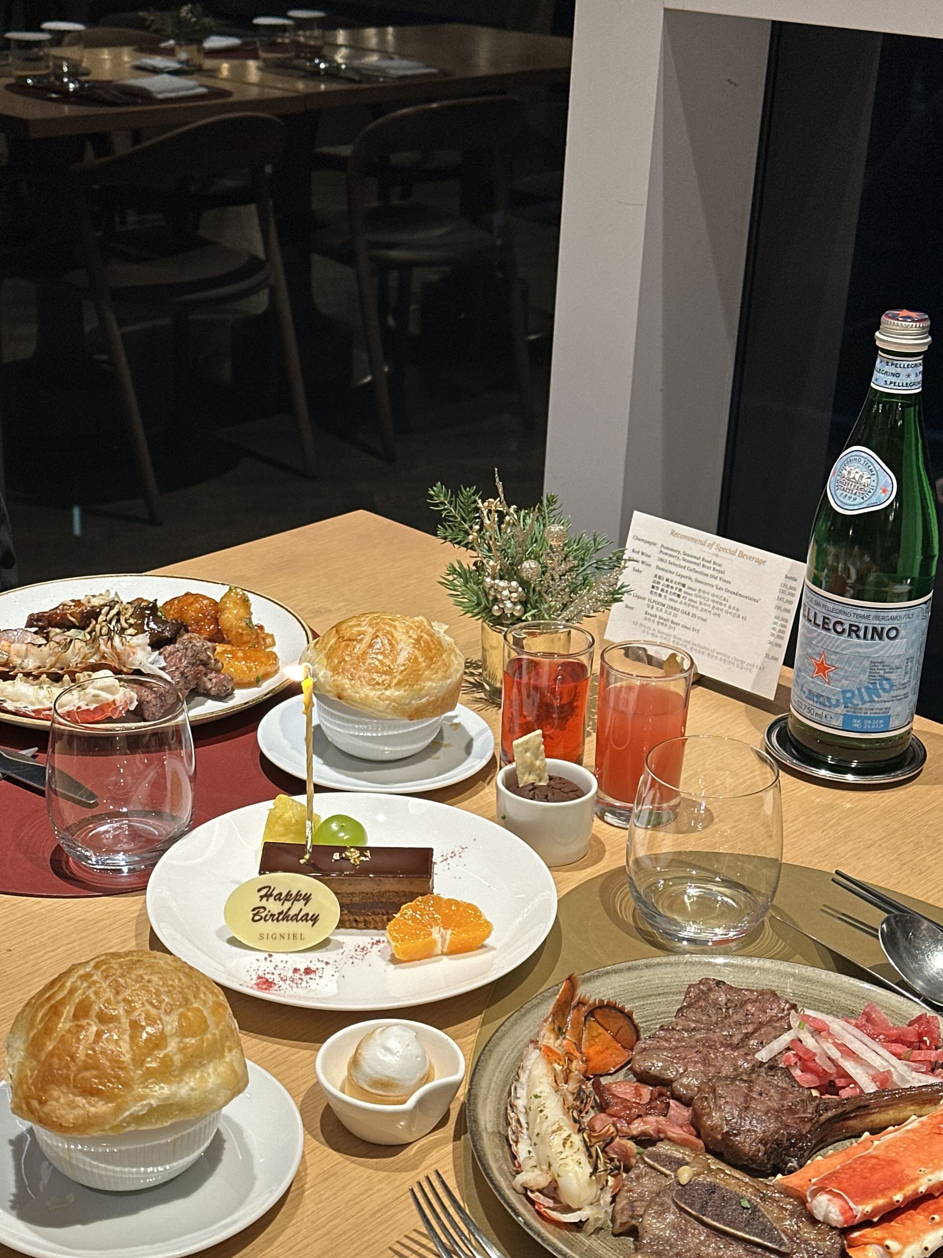 - 구성 : 샐러드, 수프, 파스타, 스테이크, 디저트, 커피 또는 차