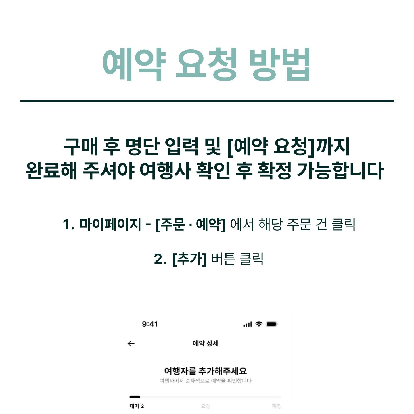 - 구매 후 : 구매 시 요청 사항을 기입하지 못하셨다면, 예약 이후 여행사 통해 요청 부탁 드립니다