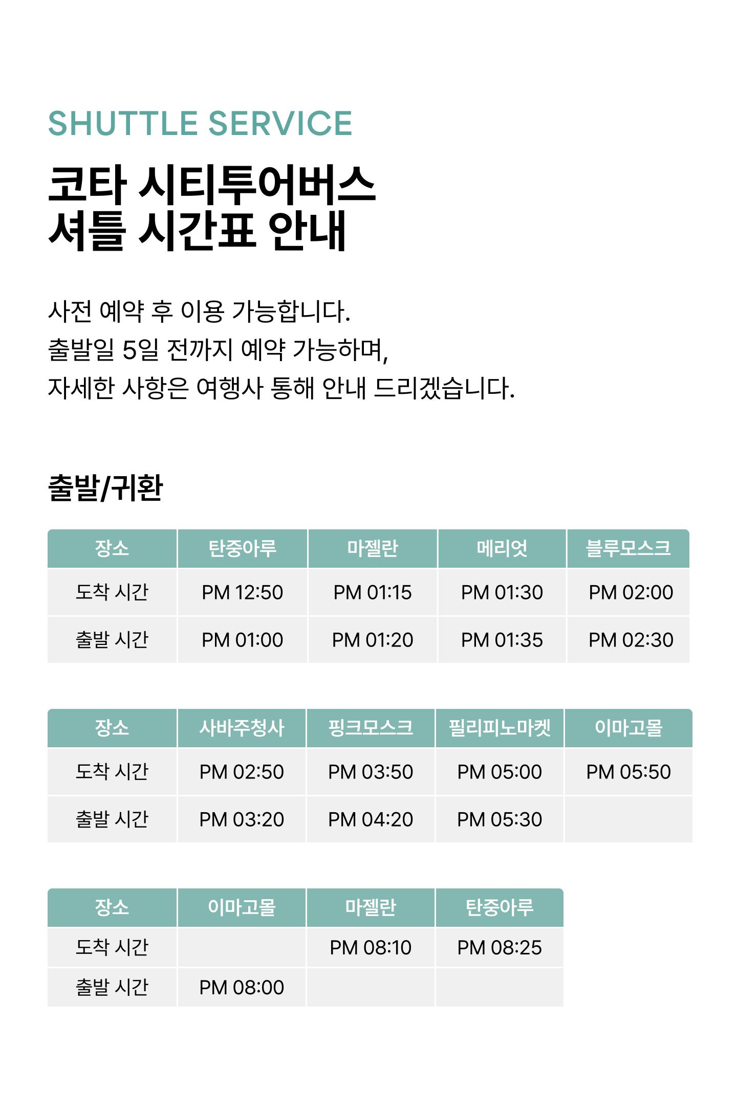 리조트↔시내 유명 쇼핑몰 왕복 셔틀 서비스 (정해진 시간 내)