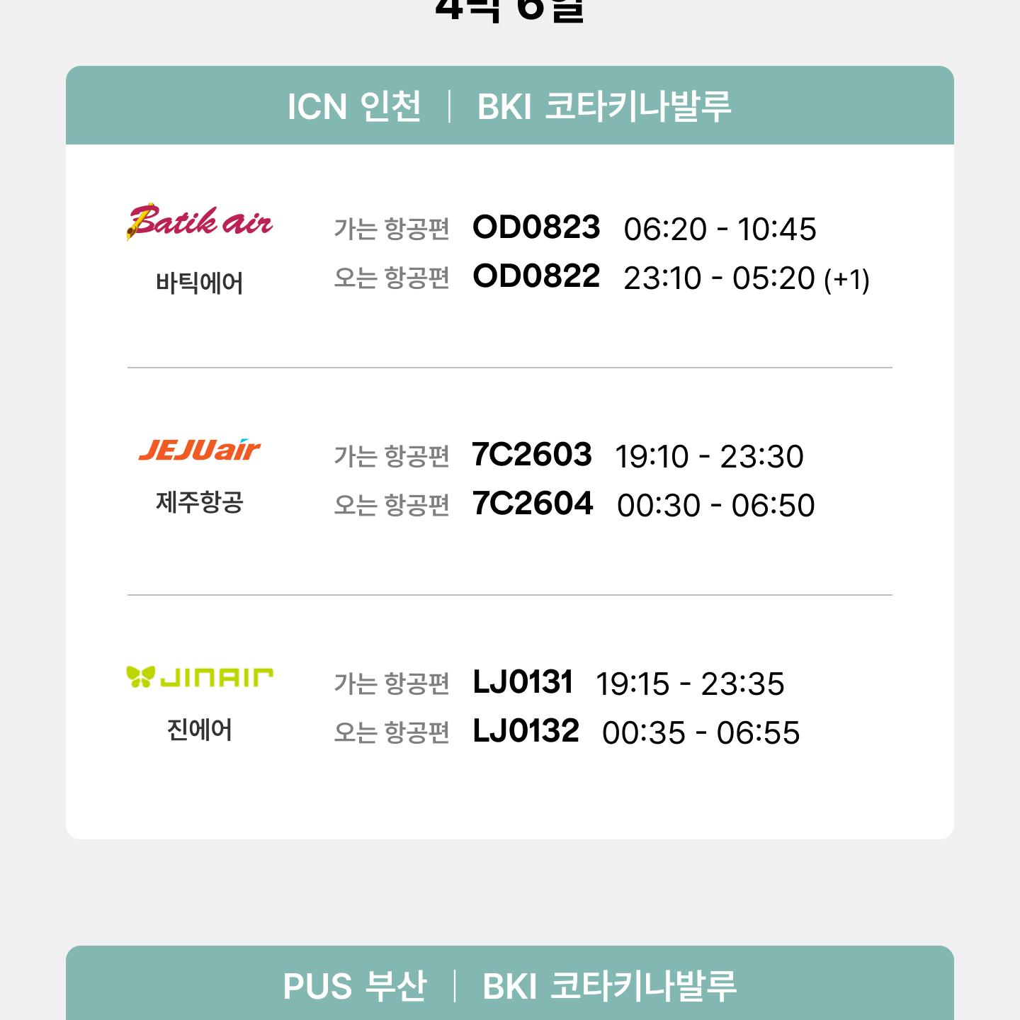 • 인천/부산↔코타키나발루 왕복 항공권