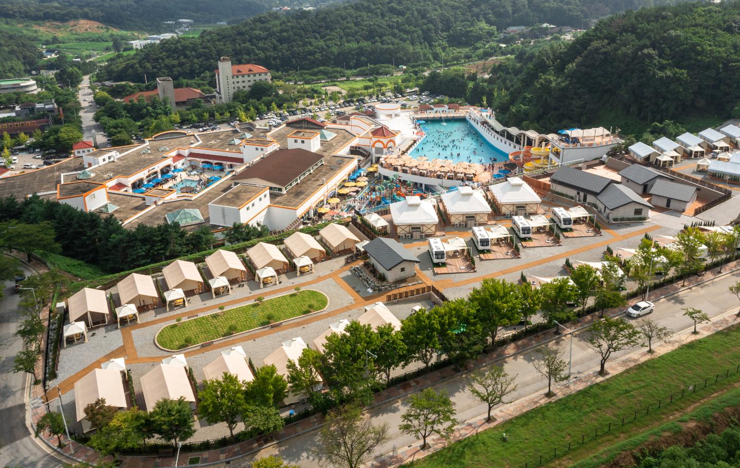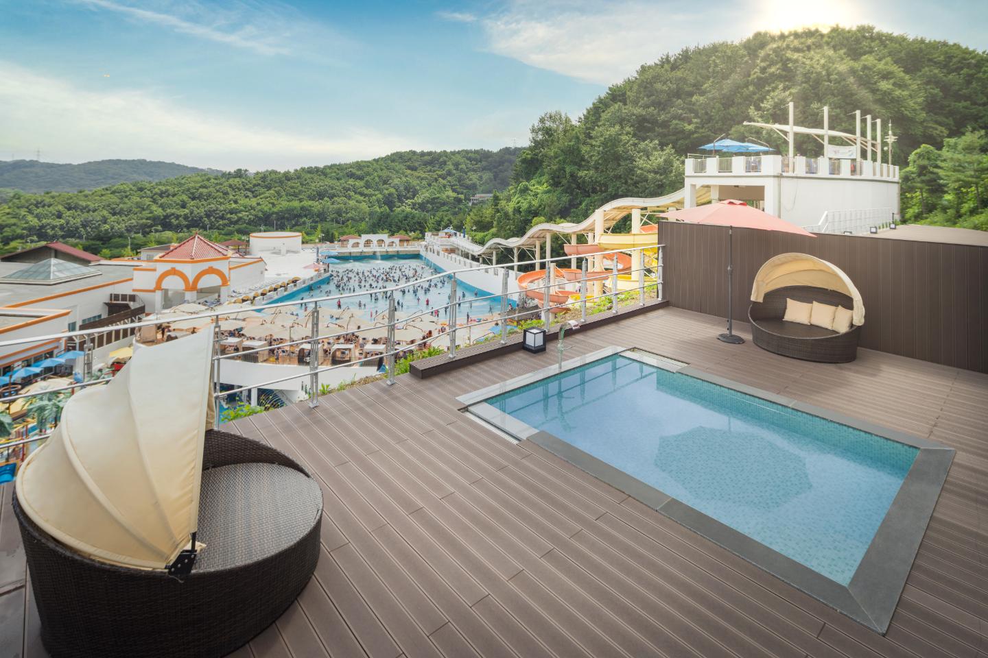 워터파크인 아산 스파비스와도 연결되어 있어 사계절 내내 자연 속에서 휴양을 즐길 수 있습니다.