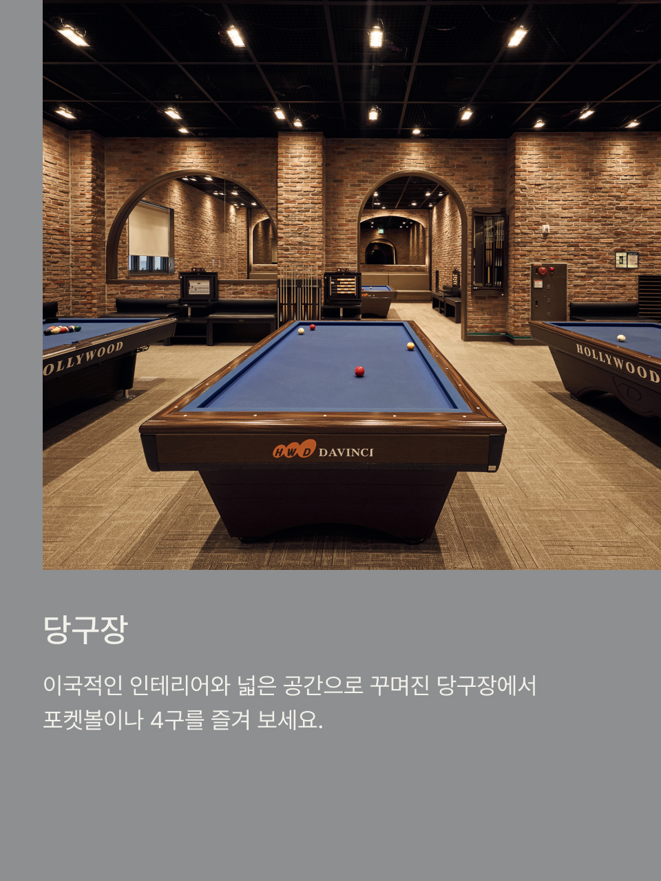 압도적 개방감을 선사합니다. 사우나, 노래방, 당구장