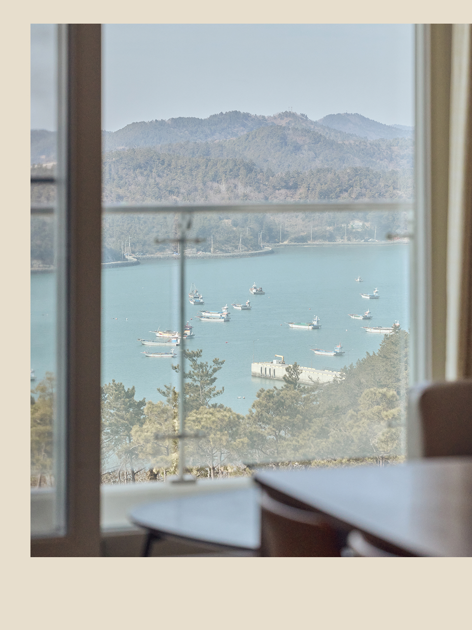창너머로 펼쳐지는 웅장한 다도해를 배경으로
