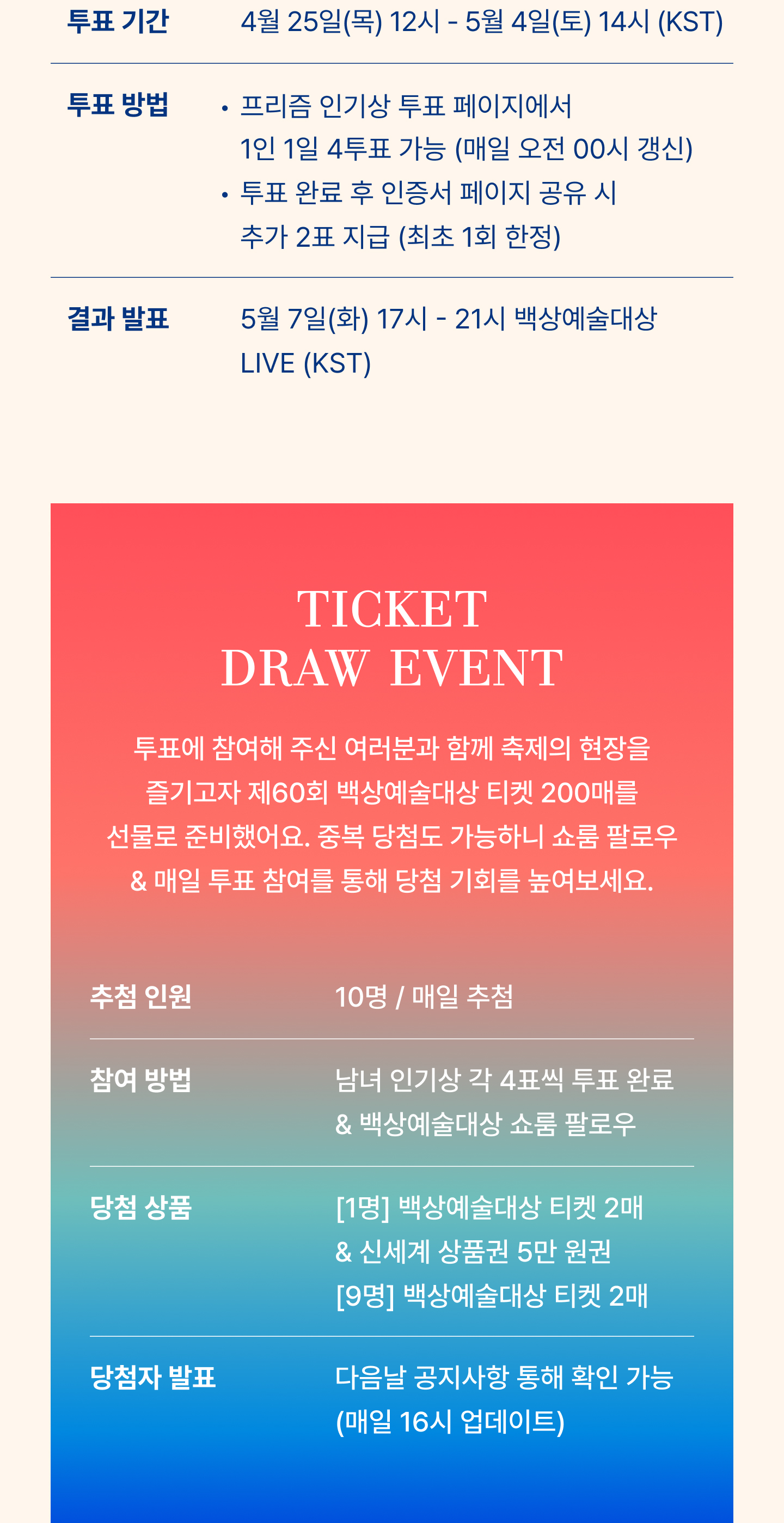 응원하는 배우를 백상예술대상 수상자로