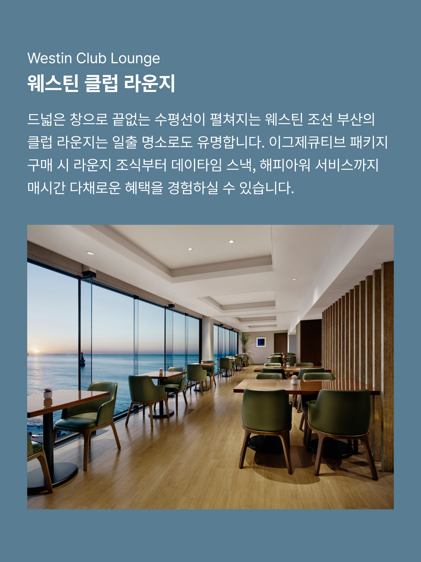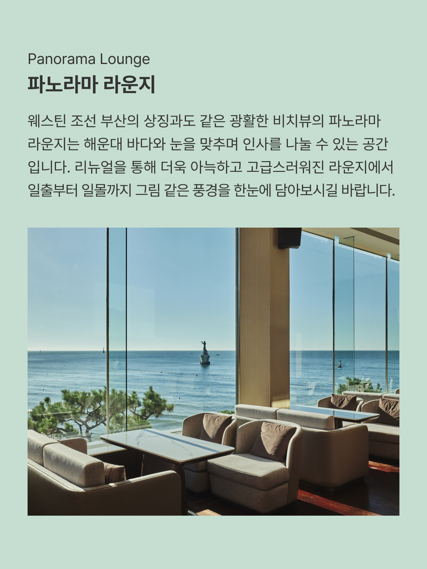 호텔의 첫 얼굴인 로비부터 수영장, 라운지까지 한층 새로워진 웨스틴 조선 부산을 소개합니다.