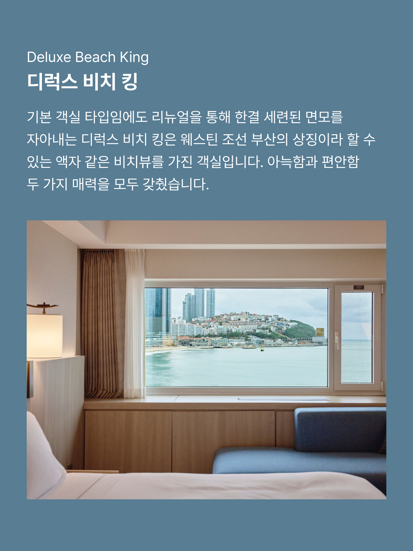 바다를 곁에 둔 지역으로 여행을 떠나게 되면 누구나 창밖으로 펼쳐지는 비치뷰를 상상하곤 하죠. 해안선과 수평선을 아우르는 독보적인 비치뷰에 마치 나만의 바다를 갖게 되는 것 같아요.