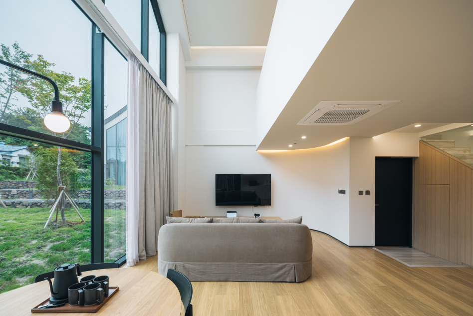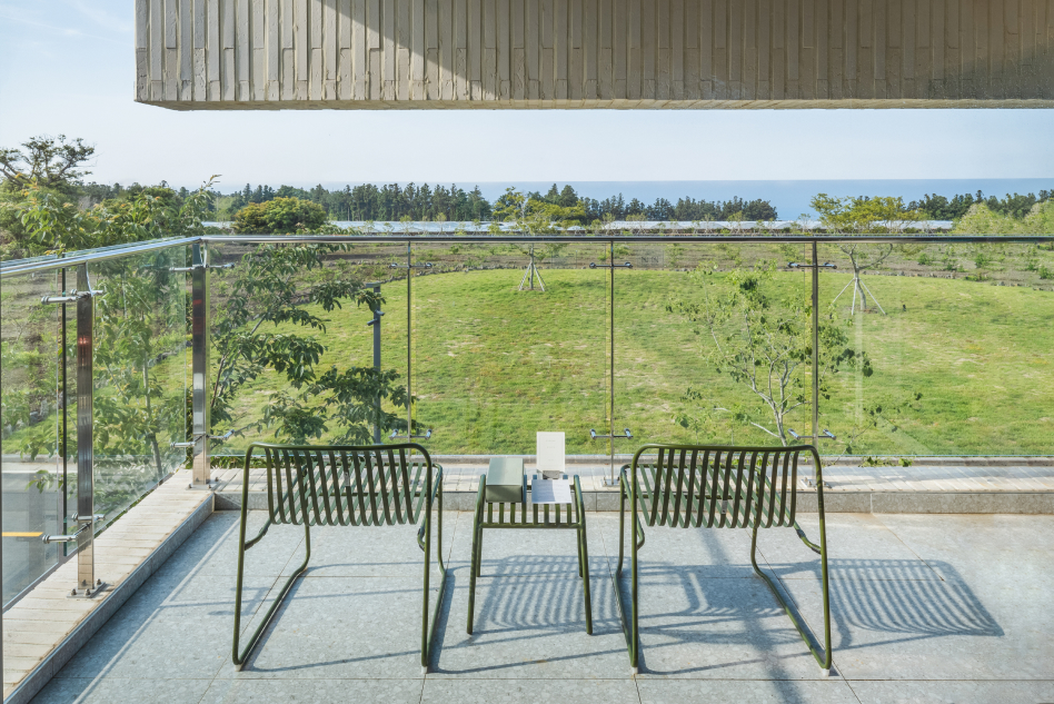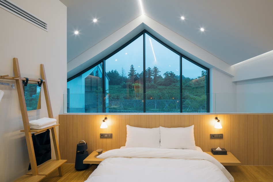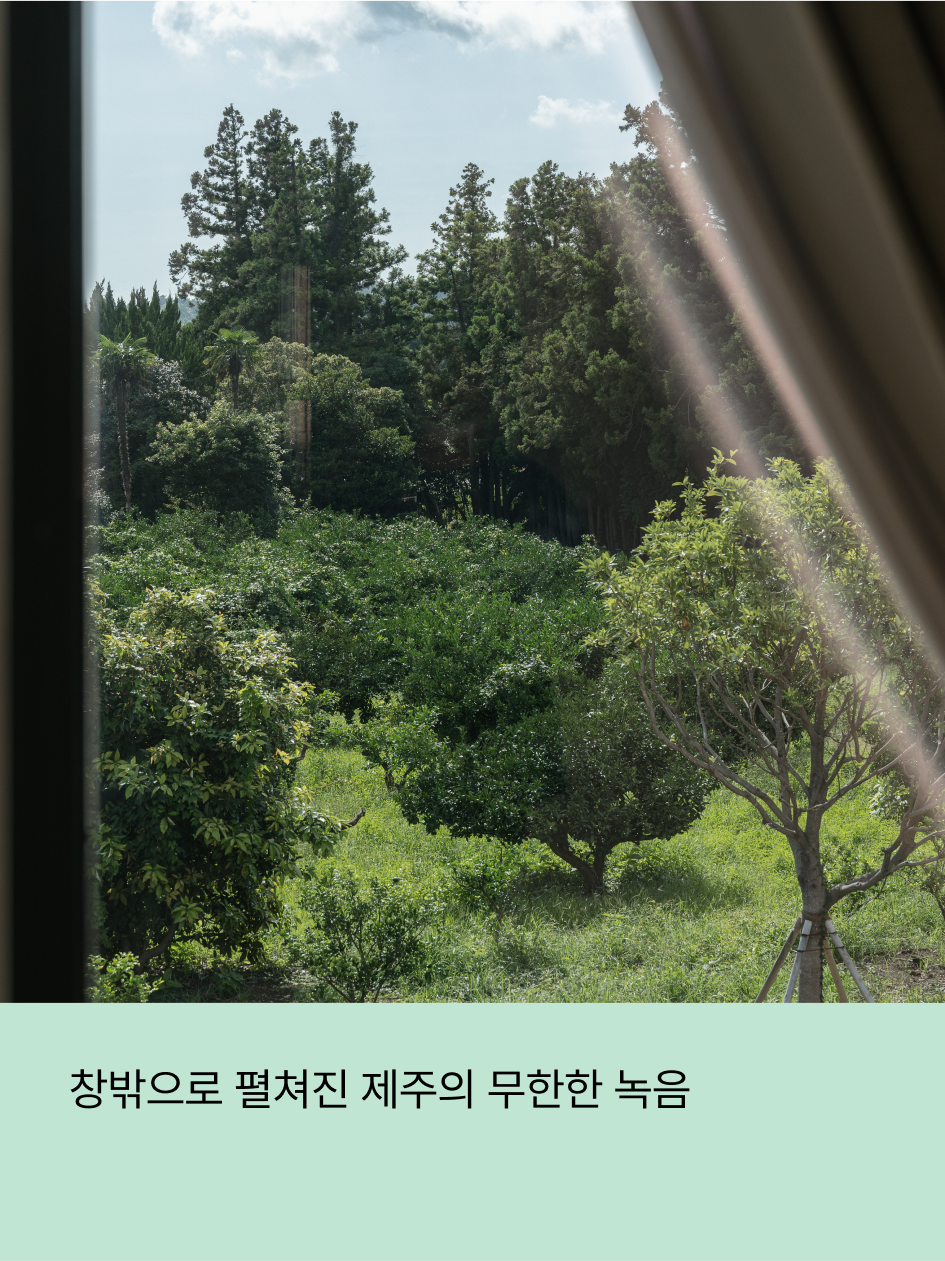 창밖으로 펼쳐진 녹음은 산 정상에 오른 듯한 자연과의